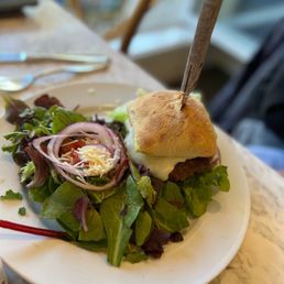 Came here for the first time today and got there just in time to order lunch before it switched to dinner. Both sandwiches were incredible, and the side salad was so good and fresh for a hot day. Service was really great, and the waiter and host were very kind and attentive. They happily brought us unseasoned chicken and a side of bacon for our dog which he also enjoyed thoroughly! Seating outside was lovely, and it wasn't packed at all around 4:20 pm on a friday, so a great place to stop if you're looking for an early dinner with limited/no wait time. Loved it here so much and will definitely have to come back for brunch :)